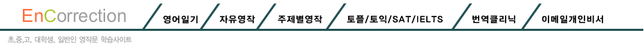 메인페이지 영어일기 자유영작 주제별영작 토플/토익/SAT/IELTS 에세이 이메일개인비서 Untitled Document