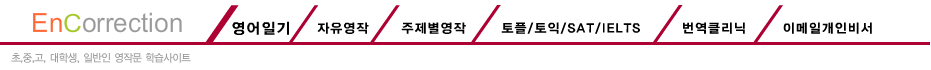 메인페이지 영어일기 자유영작 주제별영작 토플/토익/SAT/IELTS 에세이 이메일개인비서 Untitled Document